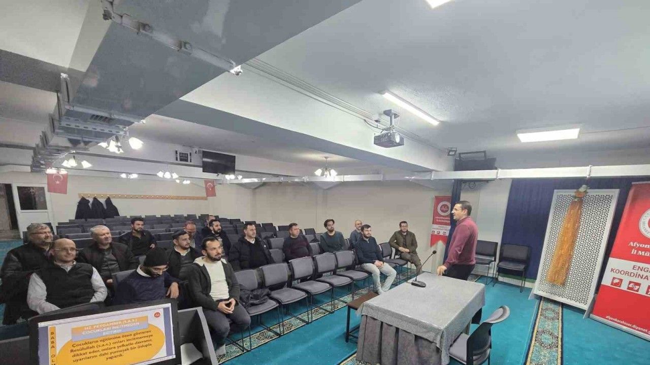 Kur’an ve sünnet temelinde ailede hak ve sorumluluklar açısından baba olmanın önemine dikkat çekmek için Diyanet İşleri Başkanlığı’nın hayata geçirdiği proje kapsamında, Afyonkarahisar İl Müftülüğü Aile ve Dini Rehberlik Merkezi tarafından Baba Okulu Semineri gerçekleştirildi. Seminerin üçüncü haftasında İl Müftü Yardımcısı Harun Küçük tarafından "Bir Baba Olarak En Güzel Örnek Hz. Peygamber(sas)" ve "Ailede Merhametin Mimarı Olarak Baba" konuları anlatıldı.