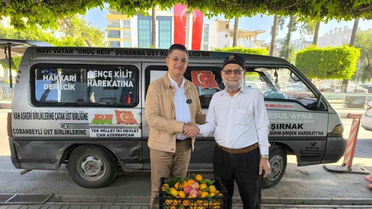 Denizli’de yaşayan 75 yaşındaki Muhammet Yılmaz, bahçesinde yetiştirdiği elmaları sınır hattında ve operasyon bölgesinde görev yapan Mehmetçiğe götürmesiyle biliniyor. Toplumda ’Elmacı Dede’ olarak tanınan Yılmaz’ın elma bahçesi bu yıl don afetinden olumsuz etkilendi ve aracını doldurabilecek kadar elmayı bahçesinden toplayamadı. Aracıyla Denizli’den yola çıkan Yılmaz’ın aracının geri kalan kısmı Dörtyol Belediyesi ve Dörtyol Kaymakamlığı iş birliğiyle mandalinayla dolduruldu. Mehmetçiğe manevi destek vermek için Dörtyol’dan Hakkari’ye doğru yola çıkan Yılmaz’ı Dörtyol Belediye Başkanı Bahadır Amaç uğurladı.
