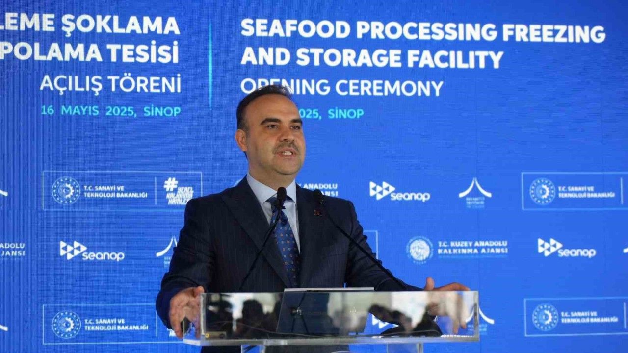 Sanayi ve Teknoloji Bakanı Mehmet Fatih Kacır, Sinop’ta hizmete giren Su Ürünleri İşleme, Şoklama ve Depolama Tesisi’nin açılışında yaptığı konuşmada, "Yıllık 1 milyon ton üretimle Türkiye, su ürünleri yetiştiriciliğinde dünyada 16. sırada. 2024’te 2 milyar doları aşan su ürünleri ihracatımızda Türk somonu artık bir dünya markası oldu" dedi.