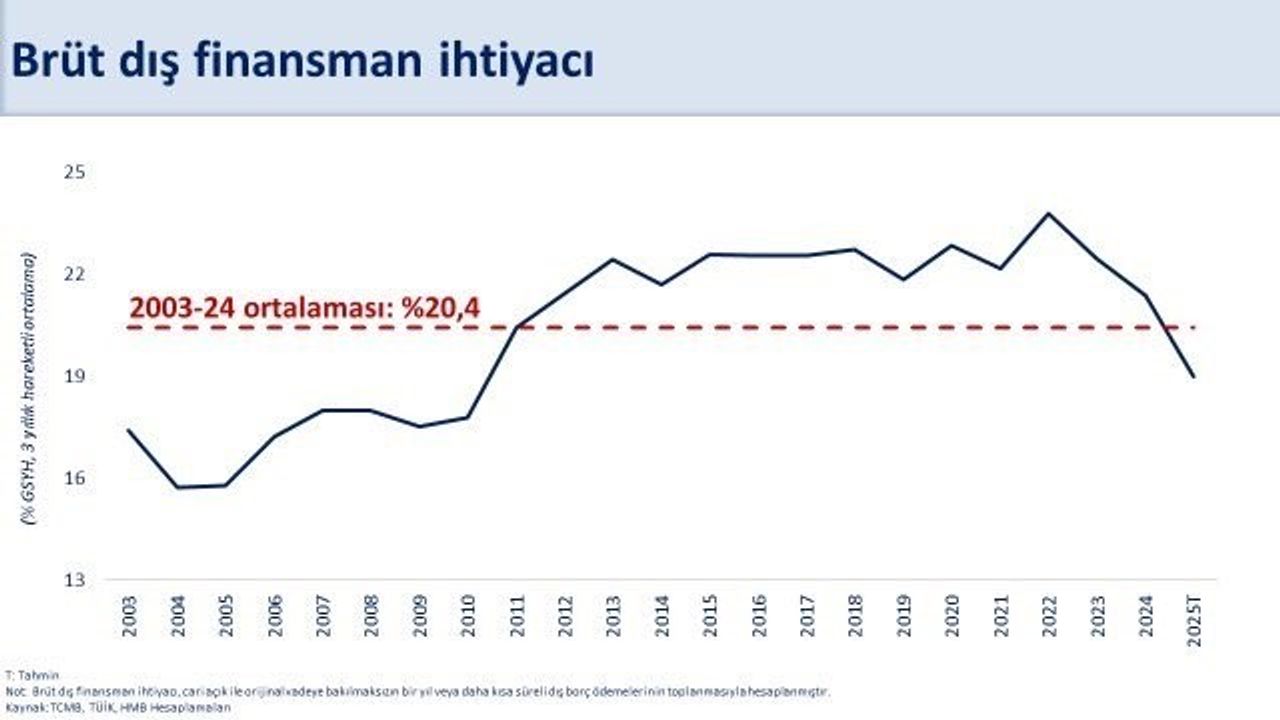 Cari açığın sürdürülebilir seviyelerde kalması, brüt dış finansman ihtiyacının milli gelire oranındaki düşüş eğiliminin süreceğine işaret ediyor.