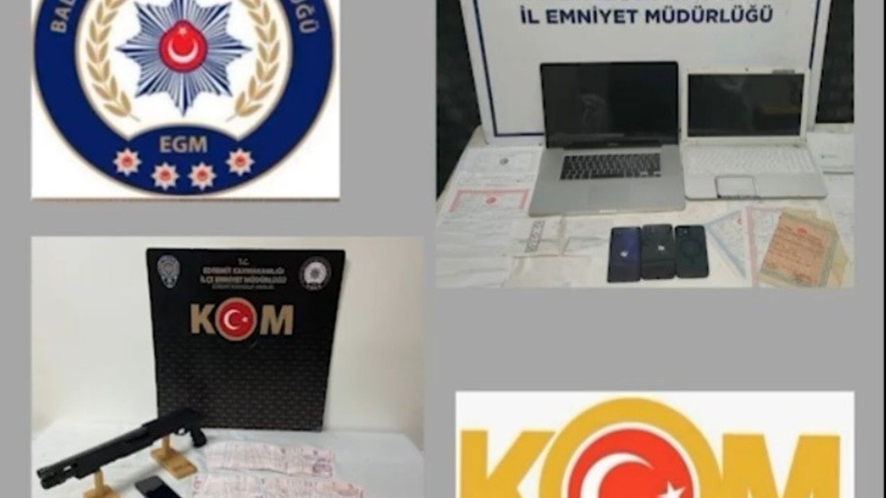 KOM Başkanlığı koordinesinde düzenlenen operasyonda, toplam 6 şüpheli gözaltına alındı. Şüphelilere ait adreslerde yapılan aramalarda, 8 adet borç ilişkili sözleşme, 5 adet farklı şahıslara ait tapu senedi, 1 adet pompalı av tüfeği, 70 bin TL suç geliri para, çok sayıda suça konu belge, dekont ve doküman ele geçirildi.