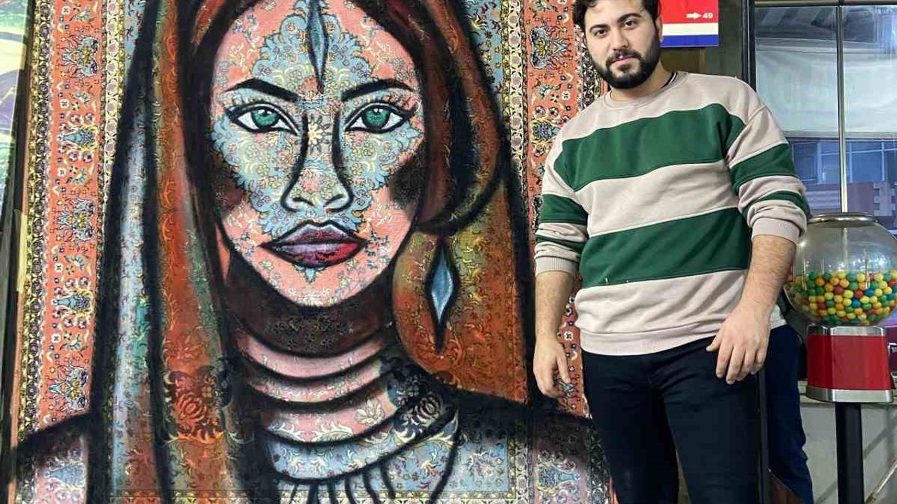 Dövme sanatçısı Erdinç Engin (32), kahve işletmecisi Erkan Yılan’ın sosyal medyada görüp beğendiği bir kadın figürünü halıya resmetti. Yılan’ın bin 500 liraya satın aldığı halı, Engin’in dokunuşuyla sanatsal bir esere dönüştü. Sprey boya ile yapılan bu çalışma, halının orijinal motifleriyle modern çizgileri buluşturarak mistik ve etkileyici bir görünüm kazandırdı.