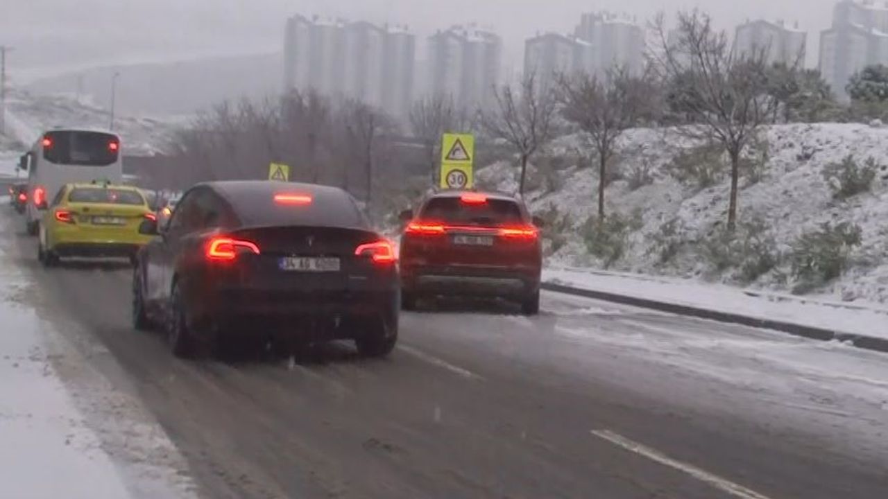 İstanbul Başakşehir’de araç sürücüleri beyaza bürünen yolda ilerlemekte zorluk çekti. Yer yer yollar kapanırken bir açta kaydı.