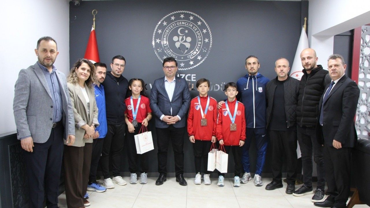 DÜZCE(İHA) – Düzce Gençlik ve Spor İl Müdürü İsa Yazıcı, karatede Türkiye derecesi yapan başarılı sporcuları ağırladı.