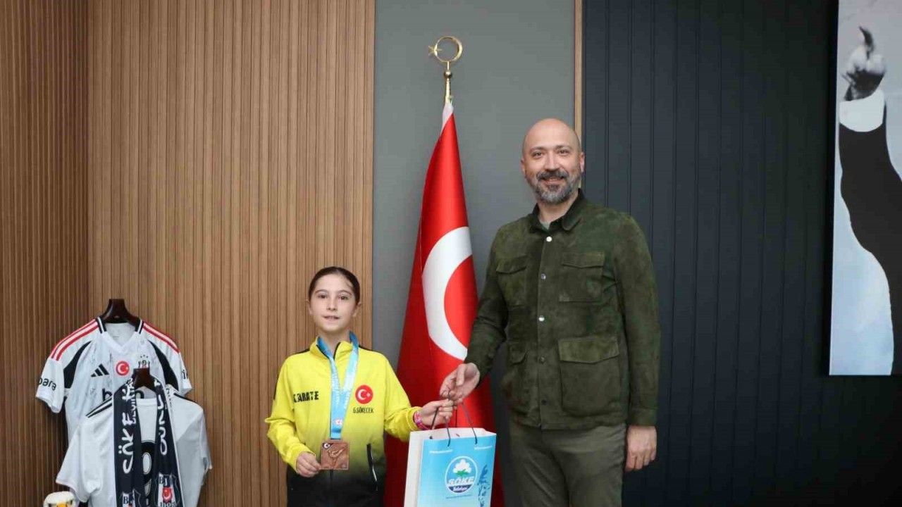 Söke Belediye Başkanı Dr. Mustafa İberya Arıkan, Türkiye Karate Şampiyonası’nda Türkiye üçüncüsü olarak büyük bir başarıya imza atan ve "Milli Sporcu" unvanını kazanan Sökeli sporcu Gülşen Görecek’i makamında ağırladı.