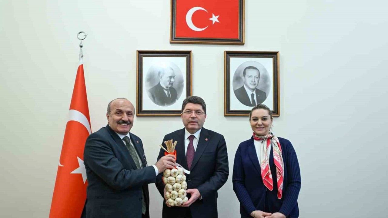 Kastamonu’nun Taşköprü Belediye Başkanı Hüseyin Arslan, ziyaret ettiği Adalet Bakanı Yılmaz Tunç’u coğrafi işaretli sarımsak hediye etti.
