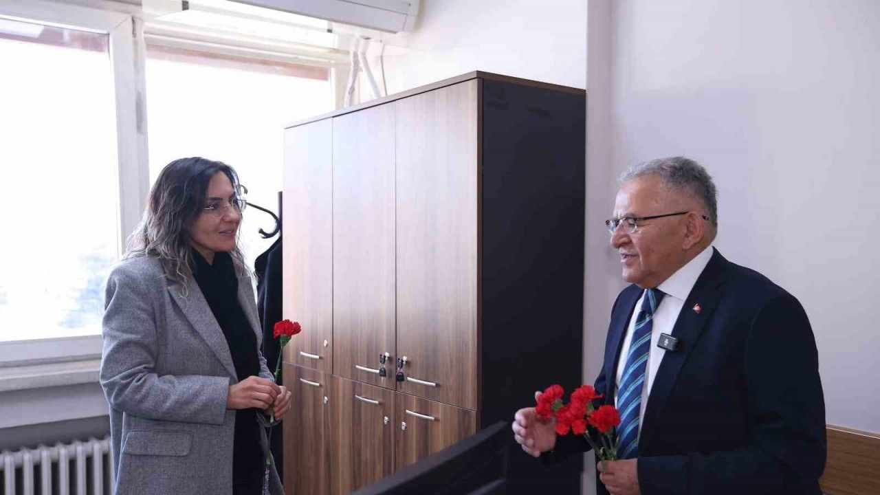 Kayseri Büyükşehir Belediye Başkanı Dr. Memduh Büyükkılıç, 8 Mart Dünya Kadınlar Günü dolayısıyla Büyükşehir Belediyesi’nin kadın personellerini görev yaptıkları birimlerde ziyaret etti ve karanfil ile hediye paketi takdim ederek kadın personellerin Dünya Kadınlar Günü’nü kutladı. Büyükkılıç, AK Parti Kayseri İl Kadın Kolları Başkanlığı’nı da ziyaret ederek İl Kadın Kolları Başkanı Meral Koşar ve kadın Kolları Teşkilatı üyelerinin Dünya Kadınlar Günü’nü tebrik etti.