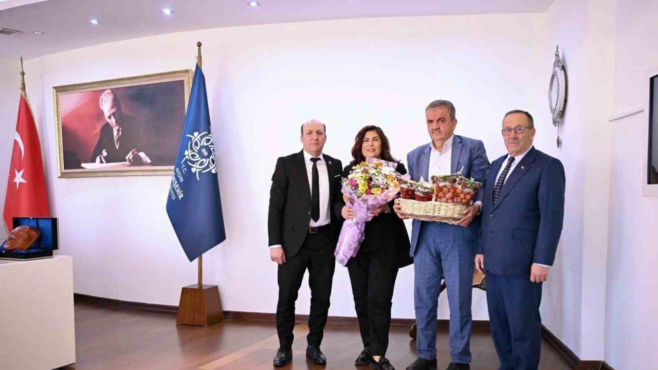Aydın Büyükşehir Belediye Başkanı Özlem Çerçioğlu’na Köşk ilçesi Akçaköy Mahallesi Muhtarı Vedat Kuruş, Muhtar Azası Tahsin Özçakır ve Aydın Ticaret Borsası Yönetim Kurulu Başkan Yardımcısı Cengiz Ülgen nezaket ziyaretinde bulundu.