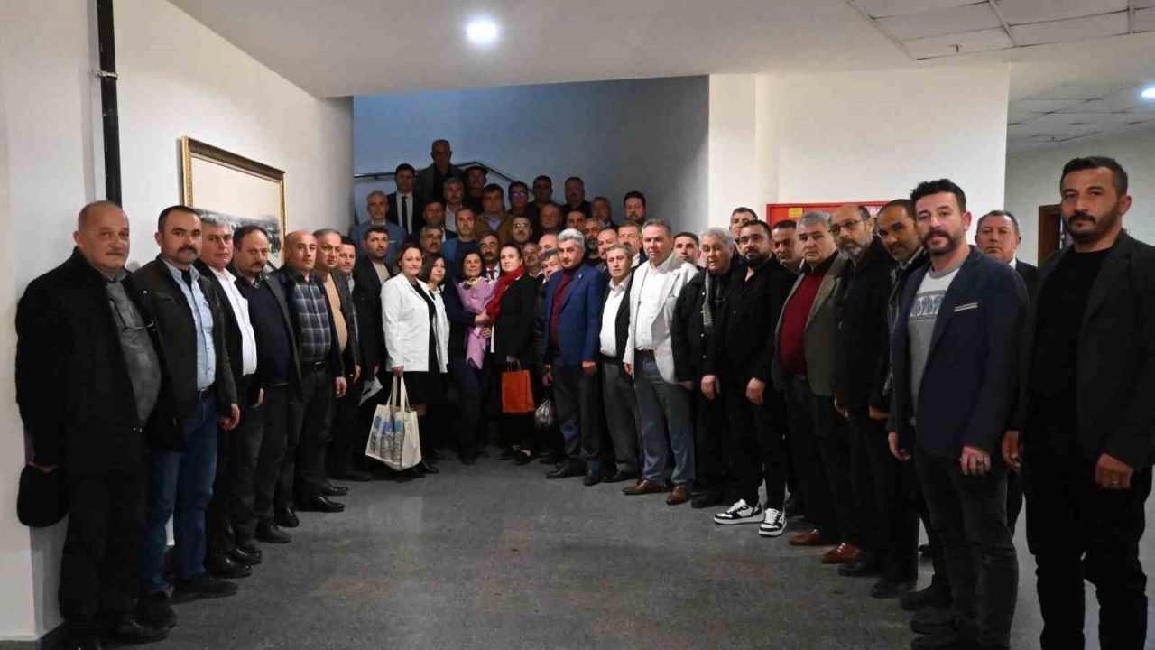 Aydın Büyükşehir Belediye Başkanı Özlem Çerçioğlu’na Nazilli Muhtarlar Derneği Başkanı Mustafa Karaburun ile yönetim kurulu üyeleri ve Nazillili muhtarlar nezaket ziyaretinde bulundu.