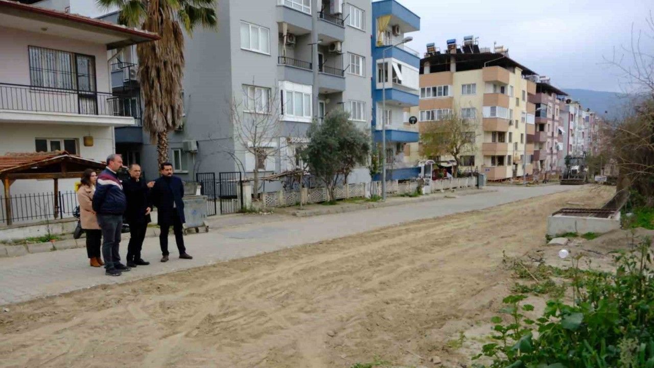 Kuyucak Belediye Başkanı Uğur Doğanca ilçede devam eden parke döşeme çalışmalarını yerinde inceledi.