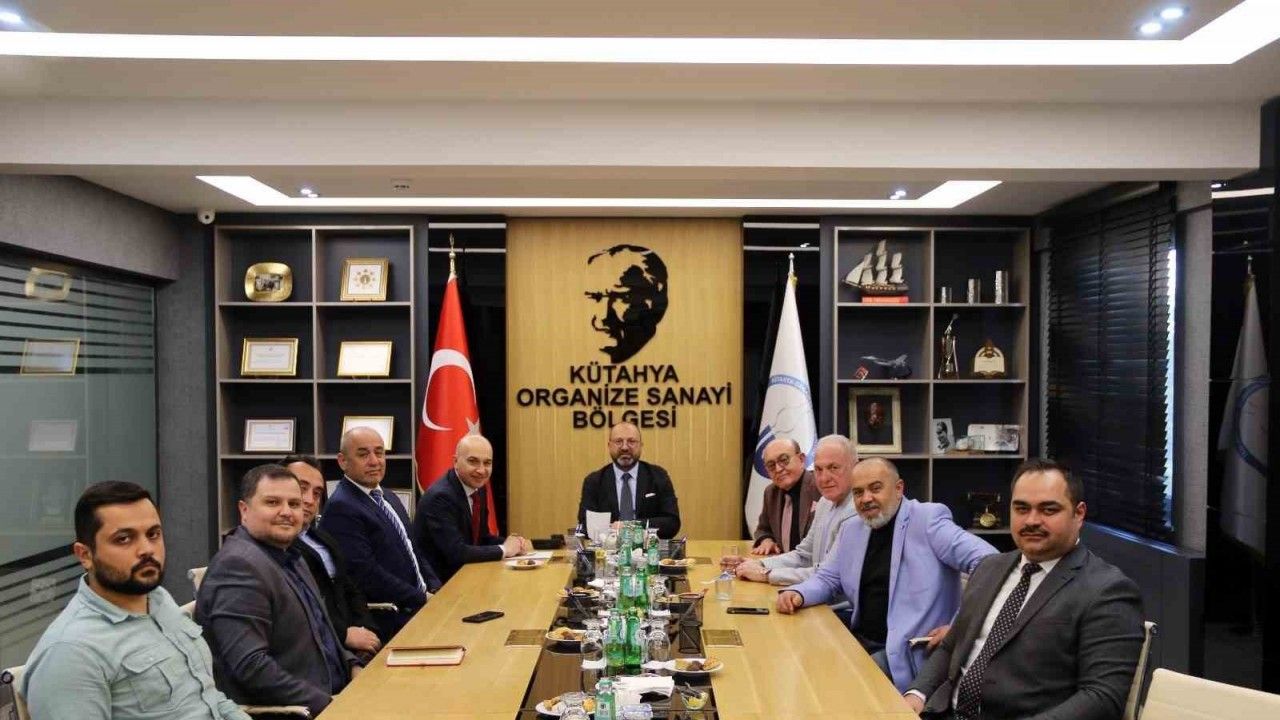Kütahya OSB Yönetim Kurulu Başkanı Tolga Eskioğlu’nun ev sahipliğinde gerçekleşen görüşmede; Başkan Vekili Emin Yüce, Yönetim Kurulu üyeleri Süleyman Ölçer ve Fatih Karabulut ile Bölge Müdürü Tunahan Ergin de hazır bulundu.