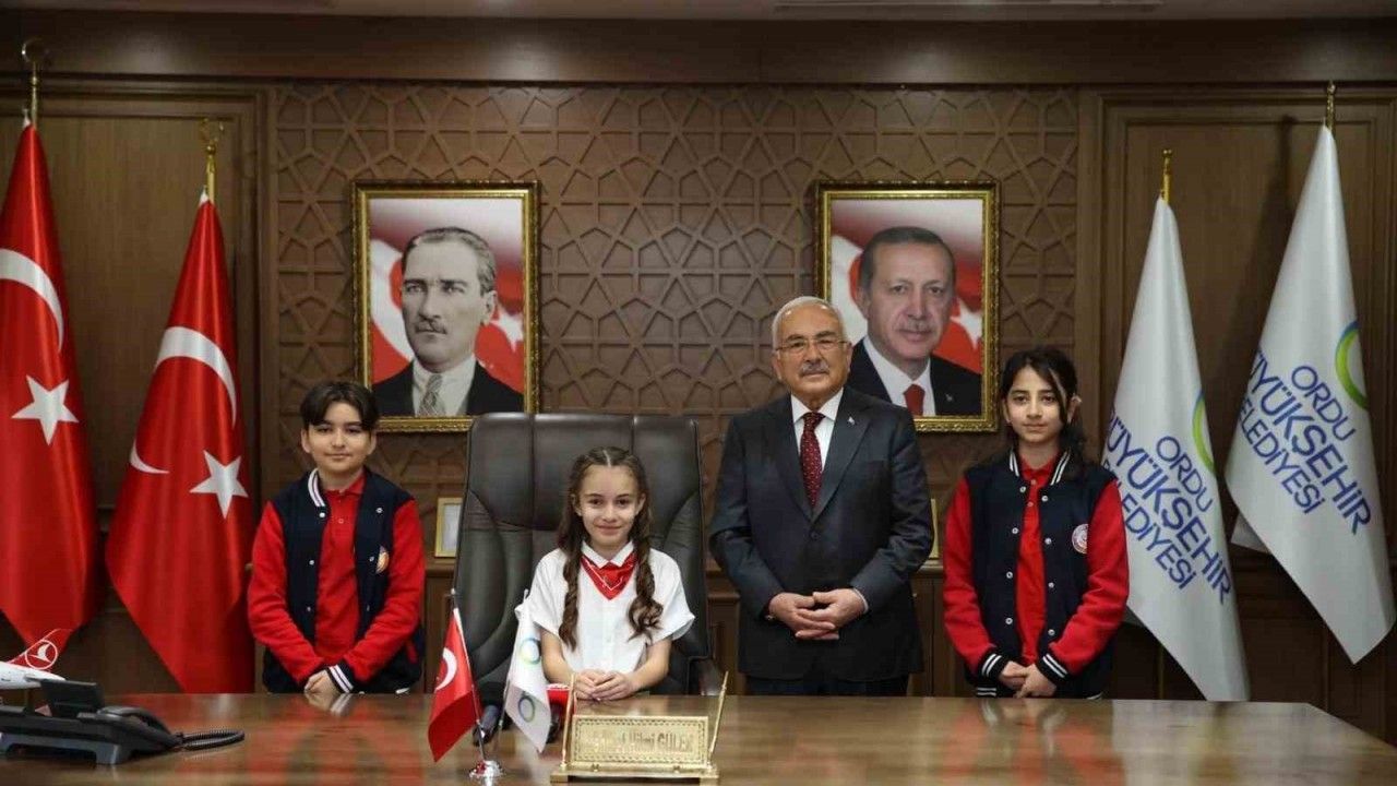 Ordu Büyükşehir Belediye Başkanı Dr. Mehmet Hilmi Güler, 23 Nisan Ulusal Egemenlik ve Çocuk Bayramı dolayısıyla makam koltuğunu Altınordu Ortaokulu 6. sınıf öğrencisi Cemre Su Korkmaz’a teslim etti.