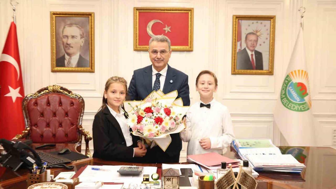SAMSUN (İHA) – Samsun’un İlkadım Belediye Başkanı İhsan Kurnaz, 23 Nisan Ulusal Egemenlik ve Çocuk Bayramı kutlamaları kapsamında minik öğrencileri makamında ağırlayarak, başkanlık koltuğunu 3. sınıf öğrencisi Elvin Tanem Zengin’e devretti.