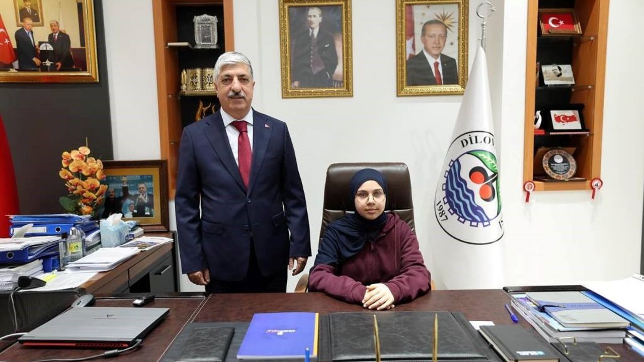 Dilovası Belediye Başkanı Ramazan Ömeroğlu, 23 Nisan Ulusal Egemenlik ve Çocuk Bayramı dolayısıyla başkanlık koltuğunu Şehit Ömer Özavcı Ortaokulu 8. sınıf öğrencisi Rubeyda Sade’ye devretti.