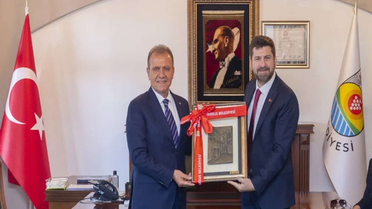 Mersin Büyükşehir Belediye Başkanı Vahap Seçer, Tarsus’ta yüksek bir oy oranıyla Tarsus Belediye Başkanı seçilen Ali Boltaç’ı makamında ziyaret ederek, hayırlı olsun dileklerinde bulundu. Ziyaret sırasında Tarsus Belediyesi bando takımı eşliğinde törenle karşılanan Başkan Seçer, bu kente olan bağlılığını bir kez daha vurguladı. Başkan Ali Boltaç ile birlikte Tarsus’ta güzel işlere imza atacaklarını her fırsatta dile getiren Başkan Seçer ziyarette kentler arası uyumun ve iş birliğinin önemine vurgu yaptı.