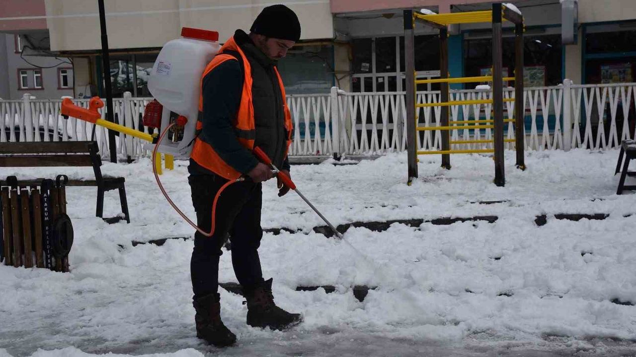 Türkiye’yi etkisi altına alan kar fırtınası sonrası teyakkuza geçen Atakum Belediyesi’nde çalışmalar devam ediyor. Kentin dört bir yanında kar temizleme çalışmaları yürütülürken, kaldırımlarda ve yollarda oluşan buzlanmalar için sıkı tedbirler alınıyor. Vatandaşlara sık sık uyarıda bulunan Atakum Belediyesi ekipleri, buzlanma tespit edilen noktalarda yoğun mesai harcıyor. Olumsuz hava şartlarına rağmen kesintisiz saha çalışmaları yürütülen ekipler, yola çıkan sürücülere ve vatandaşlara sıcak çorba ikramında bulunuyor.