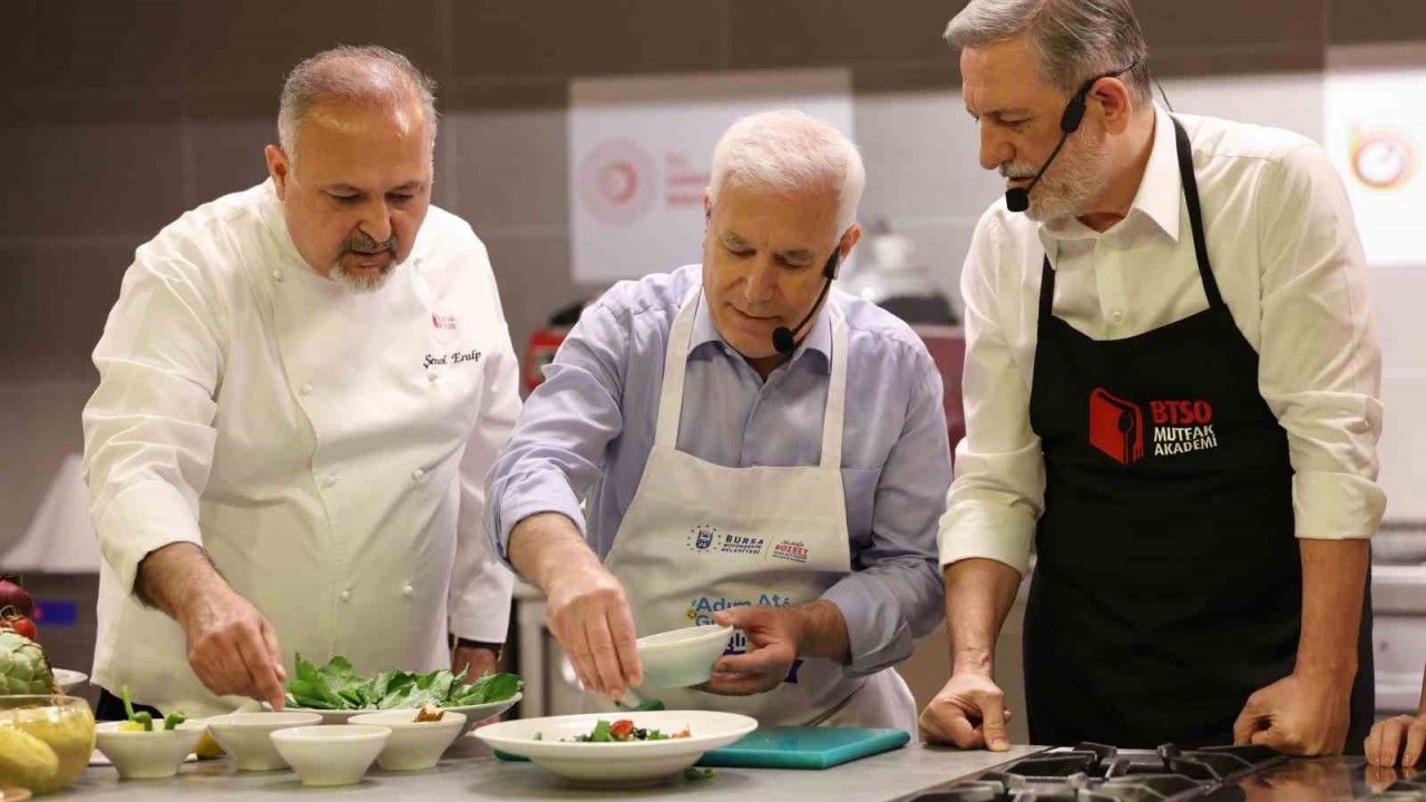 Bursa Büyükşehir Belediye Başkanı Mustafa Bozbey, ‘Adım At Gülümse, Sağlığını Önemse’ projesi çerçevesinde BTSO Mutfak Akademi’de eşi Seden Bozbey ile birlikte mutfağa girerek ’Enginarlı Fit Salata’ yaptı.