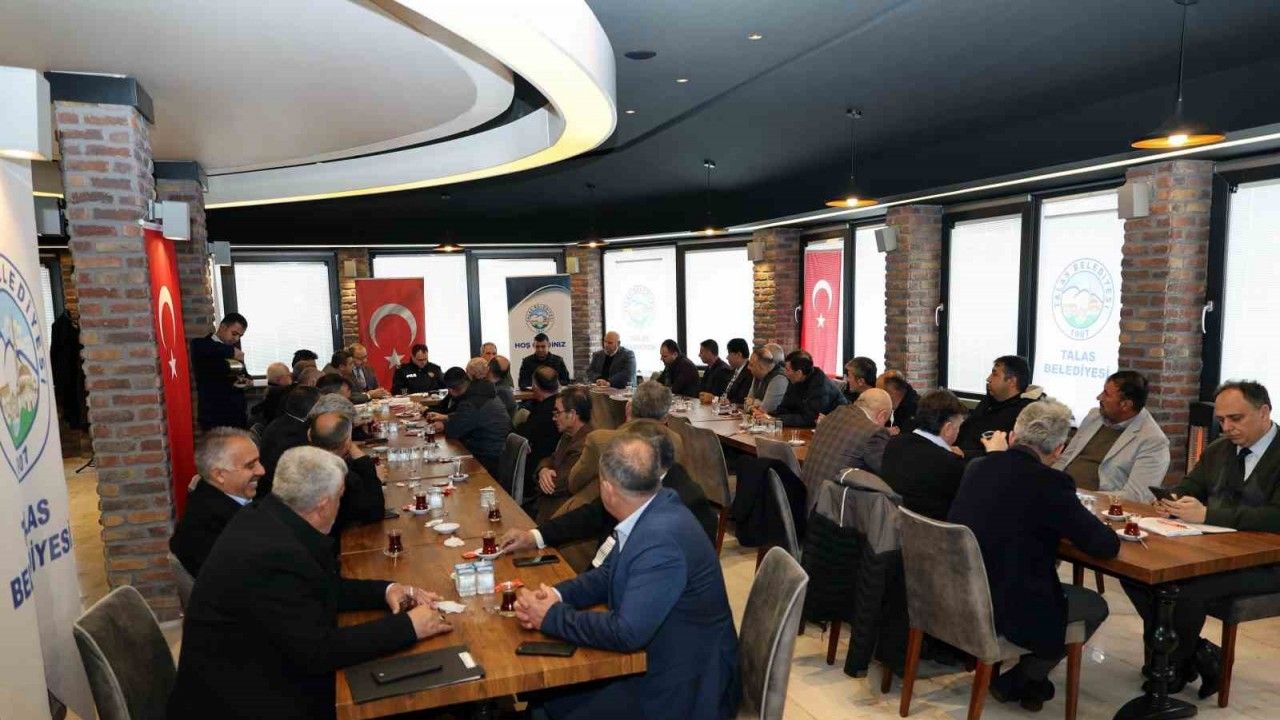 Şubat ayı muhtarlar toplantısı Başkan Yalçın başkanlığında Esma Hatun Sosyal Tesisi’nde gerçekleşti. Toplantıya Başkan Yalçın’ın yanı sıra Talas İlçe Emniyet Müdürü Enis Şimşek ve İlçe Jandarma Komutanı Üsteğmen Fatih Özer ile birlikte mahalle muhtarları da katıldı. Değerlendirme ve istişare toplantısında konuşan Başkan Yalçın; "Allah içimizdeki bu güler yüzü, muhabbeti almasın. Talas olarak imkânlarımız güzel. Hem emniyetimiz hem de jandarmamız işin her zaman başındalar. Biz de merkezi hükümetle ilgili irtibatı sağlamaya çalışıyoruz" dedi. Başkan Yalçın, kırsal mahallelerin Malatya yoluna bağlandığı kavşakla ilgili gelişmeyi de açıklayarak, "Bu yıl Kepez ve Mengücek kavşağının ihale programının içinde olduğu bilgisi geldi. Şimdiden hayırlı olsun" ifadesini kullandı. Kırsal mahallelerdeki internet alt yapısıyla da ilgili bilgiler veren Başkan Yalçın, "Kepez, Mengücek, Yazyurdu, Çevlik, Cebir, Sosun ve Yamaçlı’da internet alt yapı sorunu çözüldü" şeklinde konuştu.