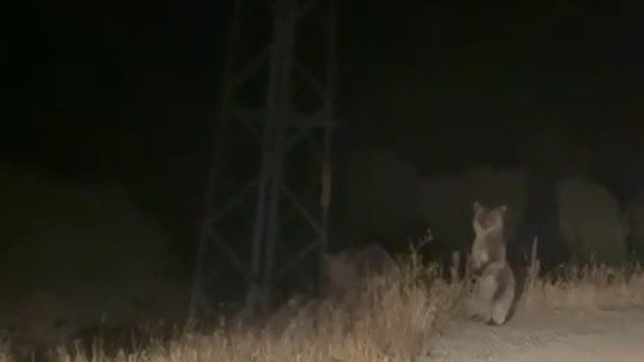 Bayburt’a 50 kilometre uzaklıktaki Yoncalı köyü yolunda seyir halinde bulunan bir aracın önüne anne ve yavru ayı çıktı. Bir süre yolda ilerleyen ayılar, koşuşturmaktan yorulunca arkasından gelen araca ters bakışlar attı. Anne ayı, arka ayakları üzerine dikilerek yavrusunu korumak amacıyla gövde gösterisinde bulundu. Anne ayının hareketini yavru ayı da tekrarlayarak, araçtakileri korkutmaya çalıştı. Bu anlar, Şamil Koçak isimli vatandaş tarafından cep telefonuyla kaydedildi.