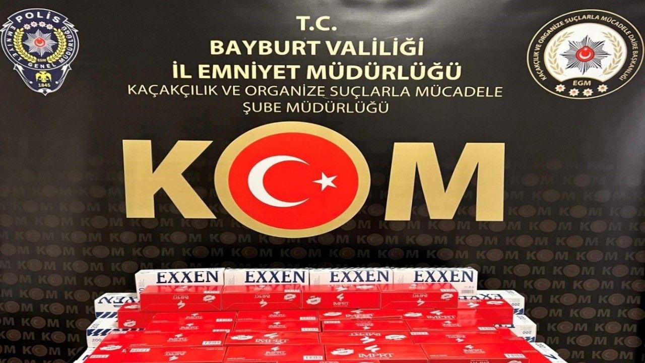 Bayburt İl Emniyet Müdürlüğü Kaçakçılık ve Organize Suçlarla Mücadele Şube Müdürlüğü görevlilerince başlatılan kaçakçılık faaliyetlerinin önlenmesi ve faillerinin yakalanmasına yönelik çalışmalar sonucunda şüphe üzerine durdurulan şahsa ait koli içerisinden 20 bin adet (100 kutu) bandrolsüz boş makaron ele geçirildi. B.D isimli şüpheli şahıs hakkında da adli işlem uygulandı.