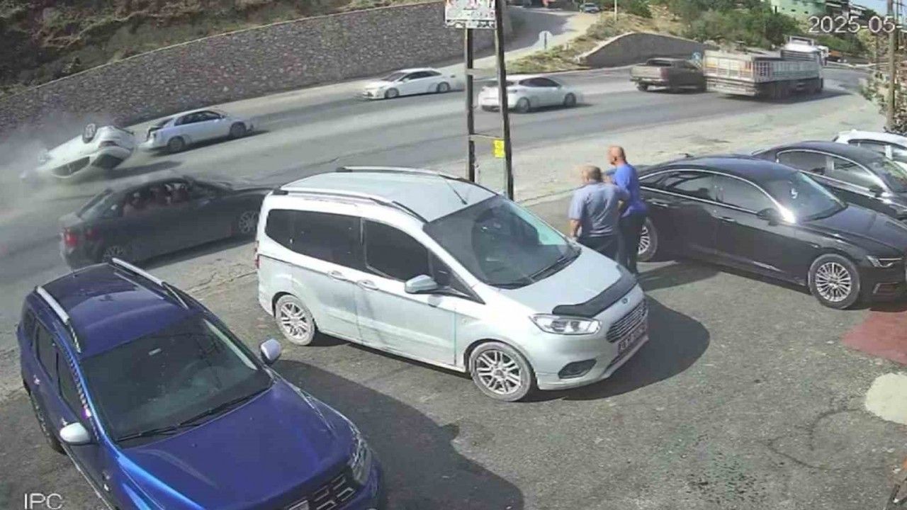 Hatay’ın Belen ilçesinde 1 kişinin yaralandığı kazada otomobilin takla attığı anlar güvenlik kamerasına yansıdı.