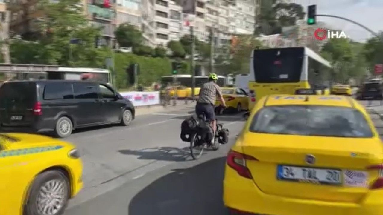 Sabiha Gökçen Havalimanına inen Helge Daniel, 40 kilometre pedal basarak, Avrupa Yakası’ndaki tarihi mekanları görmeye geçti. 2 gün boyunca bisikleti ile İstanbul’u gezeceğini belirten Helge Daniel, Dolmabahçe Sarayı’nın önündeki röportajımızda, Ukrayna Rusya arasındaki görüşmeler bu mekanda mı gerçekleşti diye sorarak hatıra fotoğrafları çekti. Türk insanının sıcak kanlı ve misafirperver olmasına şaşırdığını belirten Helge Daniel, "Ülkemizde olmayan misafirperverlik Türkiye’de görüyorum. Çok güzel bir memleket. Almanya’da 64 yaşında emekli olduktan sonra Anadolu’yu bisiklet ile gezmeye karar verdim. Hava şartlarının da müsait olduğu bir dönemde böyle bir Anadolu ve Balkanlar turu planladım. Bütün malzemelerimi bisikletime yükledim. 2 gün İstanbul’u gezeceğim. Sonra Karadeniz dahil birçok şehirleri gezerek Edirne üzerinden Balkanlar’a geçeceğim. Yunanistan’ın küçük bir bölümünden Bulgaristan, Romanya, Sırbistan’a geçeceğim. Makedonya gibi Balkan ülkelerinin tarihi şehirlerini dolaşarak Almanya’ya döneceğim. Yaptığım rotaya göre yaklaşık 3 bin 300 kilometre pedal basacağım. Gezimin ilk günlerinde Türkiye’deki insanların yaklaşımlarından çok memnunum" diye konuştu.