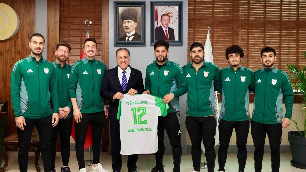 12 Bingölspor futbolcuları şampiyonluktaki son viraj olan Batman Kayra maçı öncesinde Vali Ahmet Hamdi Usta’yı makamında ziyaret etti.
