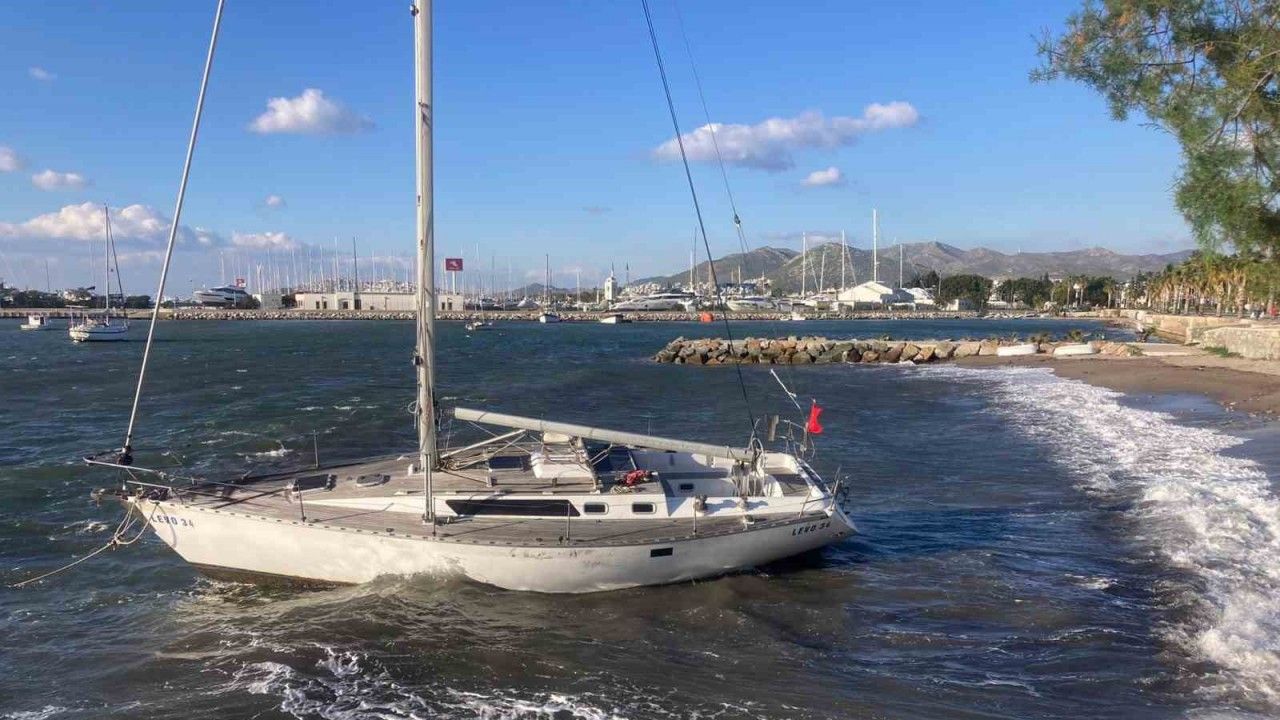 Muğla’nın Bodrum ilçesinde dünden bu yana etkili olan fırtına sebebiyle yelkenli tekne karaya sürüklendi, feribot seferleri bugün de yapılamadı.
