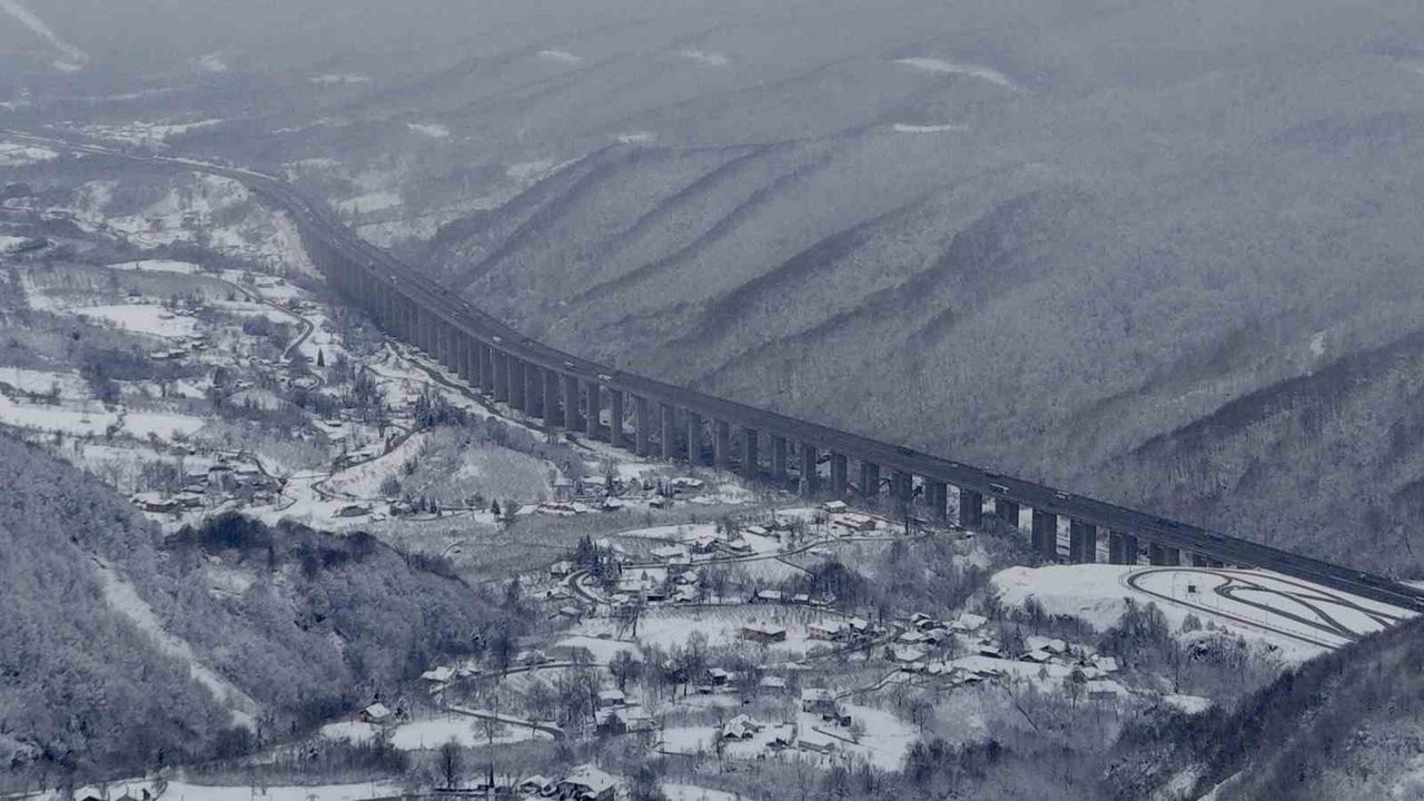 İstanbul ile Ankara arasında ulaşımı sağlayan D-100 kara yolu ve Anadolu Otoyolu'nun Bolu Dağı kesiminde etkili olan yağışın ardından ormanlık alanlar karla kaplandı. Bölgedeki çam ağaçlarının beyaz örtüyle bütünleşmesi ve iki ana ulaşım aksının aynı karede yer aldığı anlar havadan kayda alındı.
