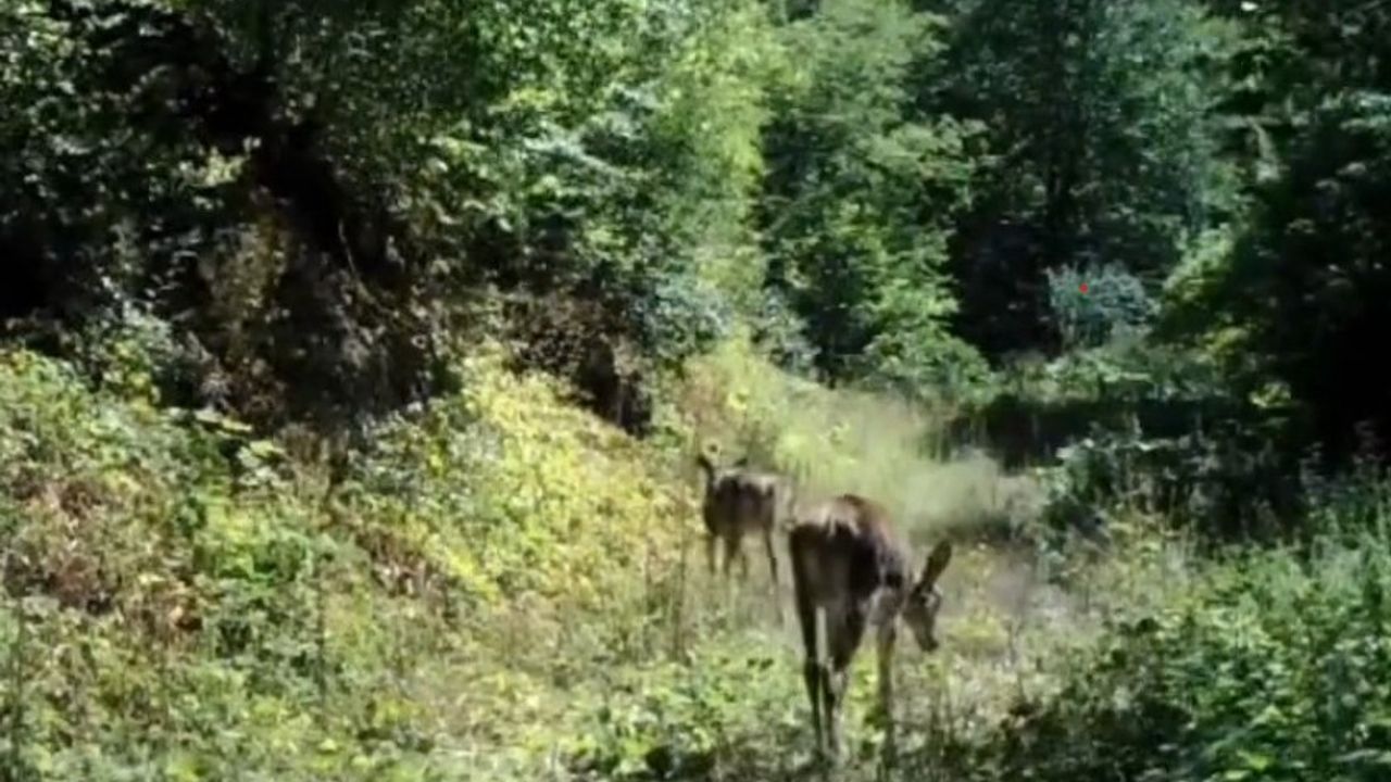 Bolu’nun doğa harikalarından biri olan Yedigöller Milli Parkı bölgesinde, nadir olarak karşılaşılan kızıl geyikler ormanlık alanda görüntülendi. Bolu Doğa Koruma ve Milli Parklar Şube Müdürlüğü tarafından kaydedilen görüntülerde, kızıl geyiklerin ormanlık alanda doğal ortamlarında hareket halinde oldukları görüldü.