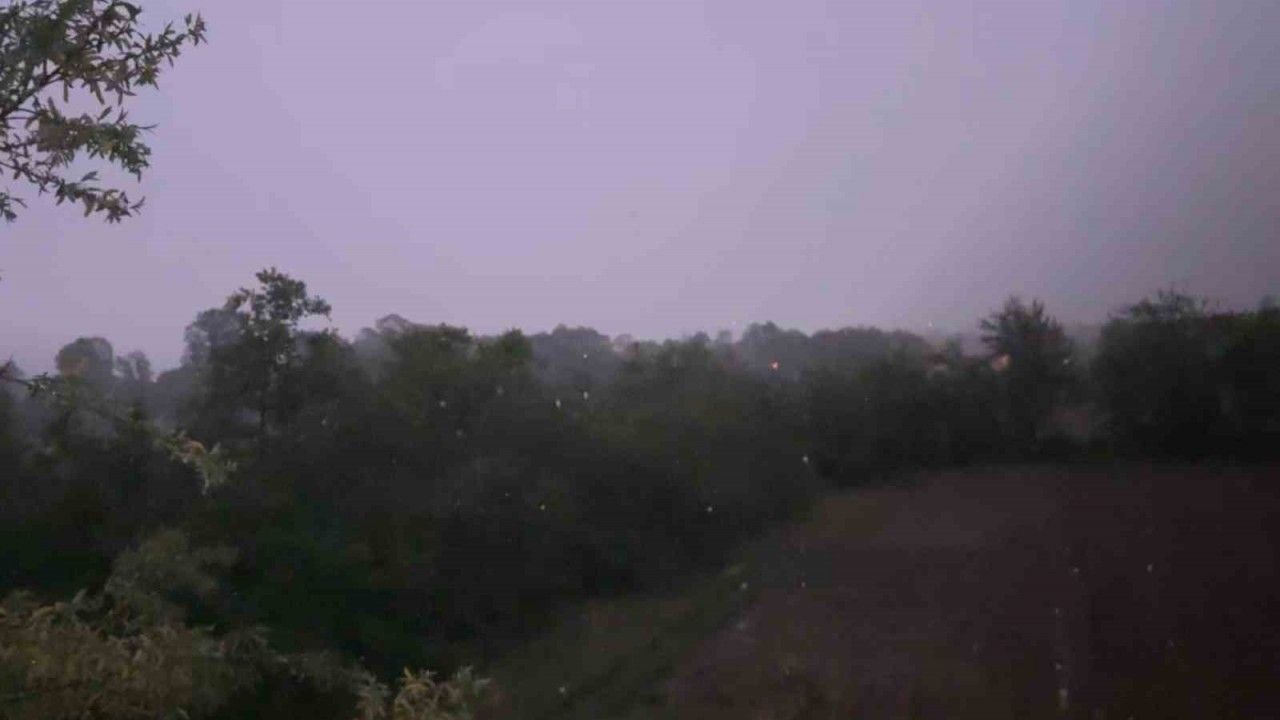 Bolu’da gün boyu kapalı seyreden hava, gece saatlerinde yerini sağanak yağışa bıraktı. Yağmurla birlikte art arda çakan şimşekler, geceyi aydınlattı. Gökyüzünü aydınlatan şimşekler, bulutların ardından gökyüzünü mor rengine kapladı. Yarım saat boyunca etkili olan sağanak kısa sürede etkisini yitirdi.