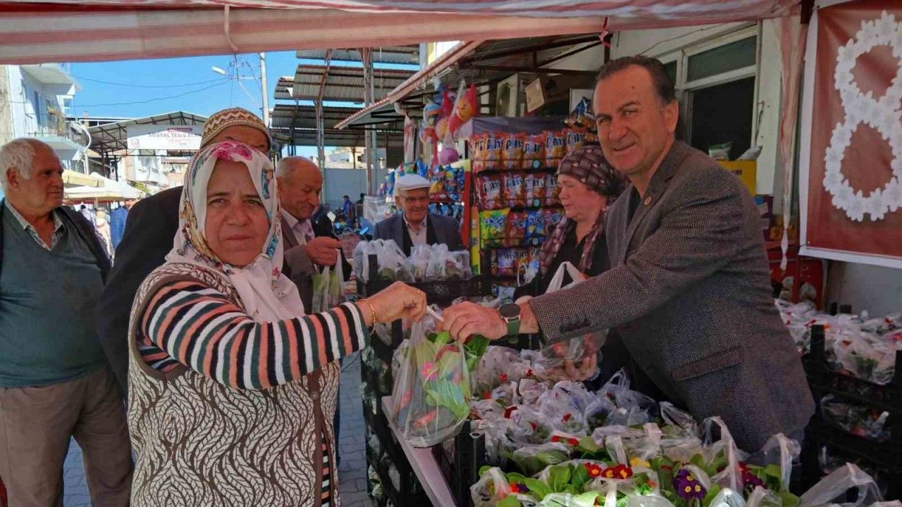 Aydın’ın Bozdoğan ilçesindeki kadınların günü kutlayan Bozdoğan Belediye Başkanı Galip Özel, dikime hazır hale getirilen rengarenk çiçekleri, kadınlara hediye etti.