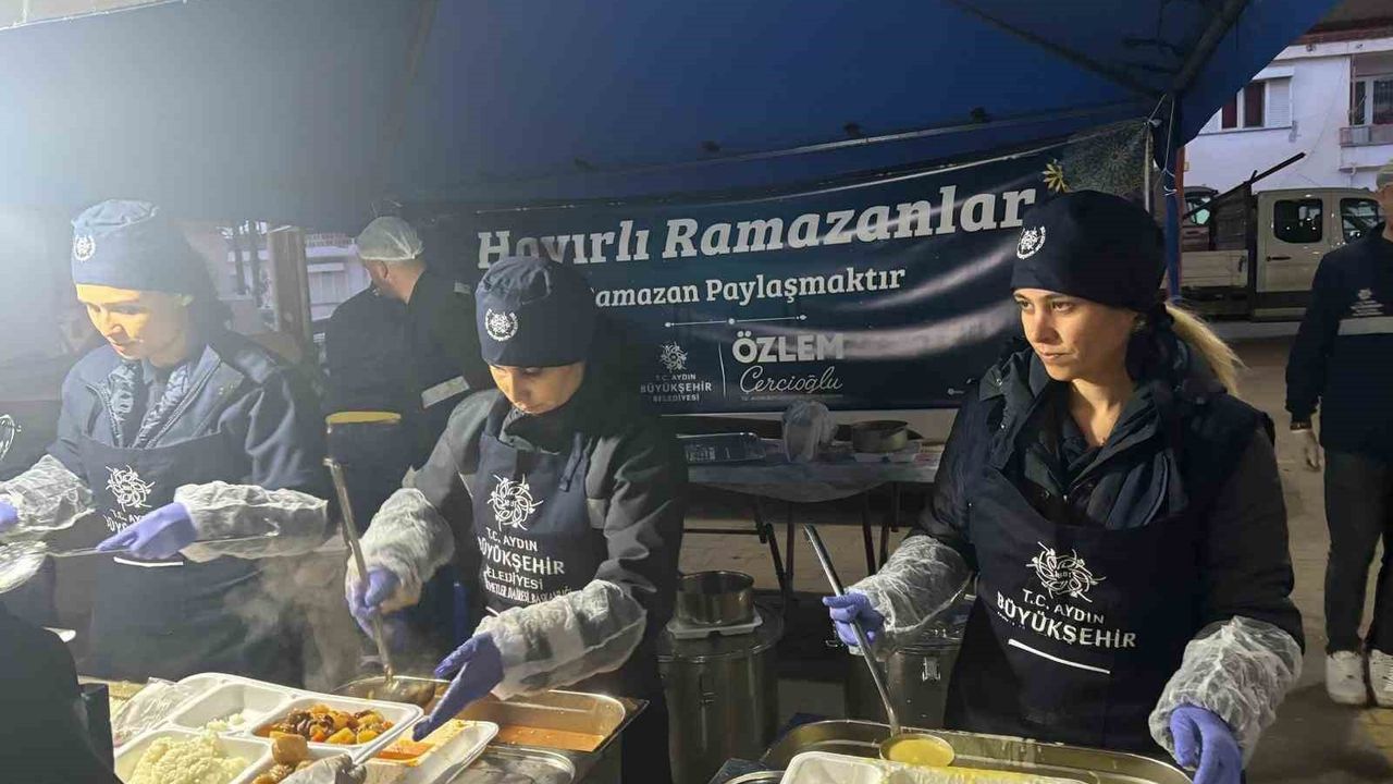 Aydın’ın Bozdoğan ilçesinde vatandaşlar ilk iftarlarını Aydın Büyükşehir Belediyesi’nin iftar sofrasında açtı.