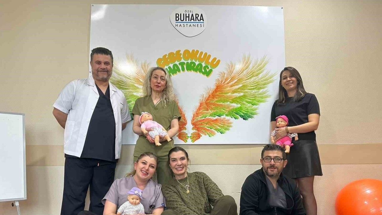 Özel Buhara Hastanesi’nin Kadın Hastalıkları ve Doğum Servisi doktorları Op. Dr. Gül Demet Say Kömeç, Prof. Dr. Ömer Erkan Yapça, Op. Dr. Berna Aşır, Op. Dr. Fatma Aydın, Op. Dr. Hümeyra Çanakçı ve Op. Dr. Muhammet Usta’nın da gebelik, doğum, bebek bakımı, bebek sağlığı, emzirme gibi konularda eğitim verdiği Gebe Okulu, anne ve baba adaylarının önemli bir ihtiyacına cevap veriyor.