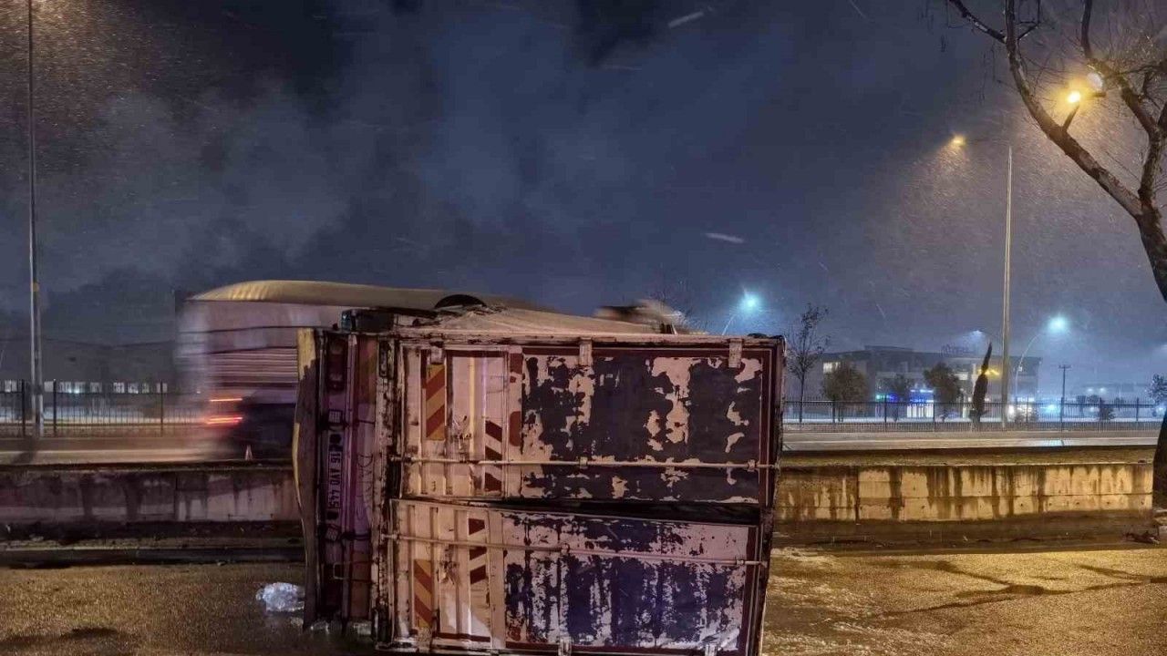 Bursa’nın İnegöl ilçesinde kontrolden çıkan içecek yüklü kamyon devrildi. Araç sürücüsü kazayı yara almadan atlattı.