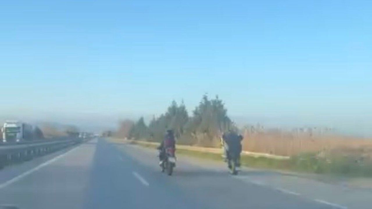 Edinilen bilgiye göre, ana arterde ilerleyen iki motosiklet sürücüsü, trafikte akışı hiçe sayarak zaman zaman tek teker üzerinde ilerledi. Aşırı hız yaptığı görülen sürücülerin o anları çevredeki vatandaşlar tarafından cep telefonu kamerasıyla kaydedildi. Görüntülerde sürücülerin kontrolsüz hareketleri dikkat çekerken, yaşananla kazaya davetiye çıkardı.