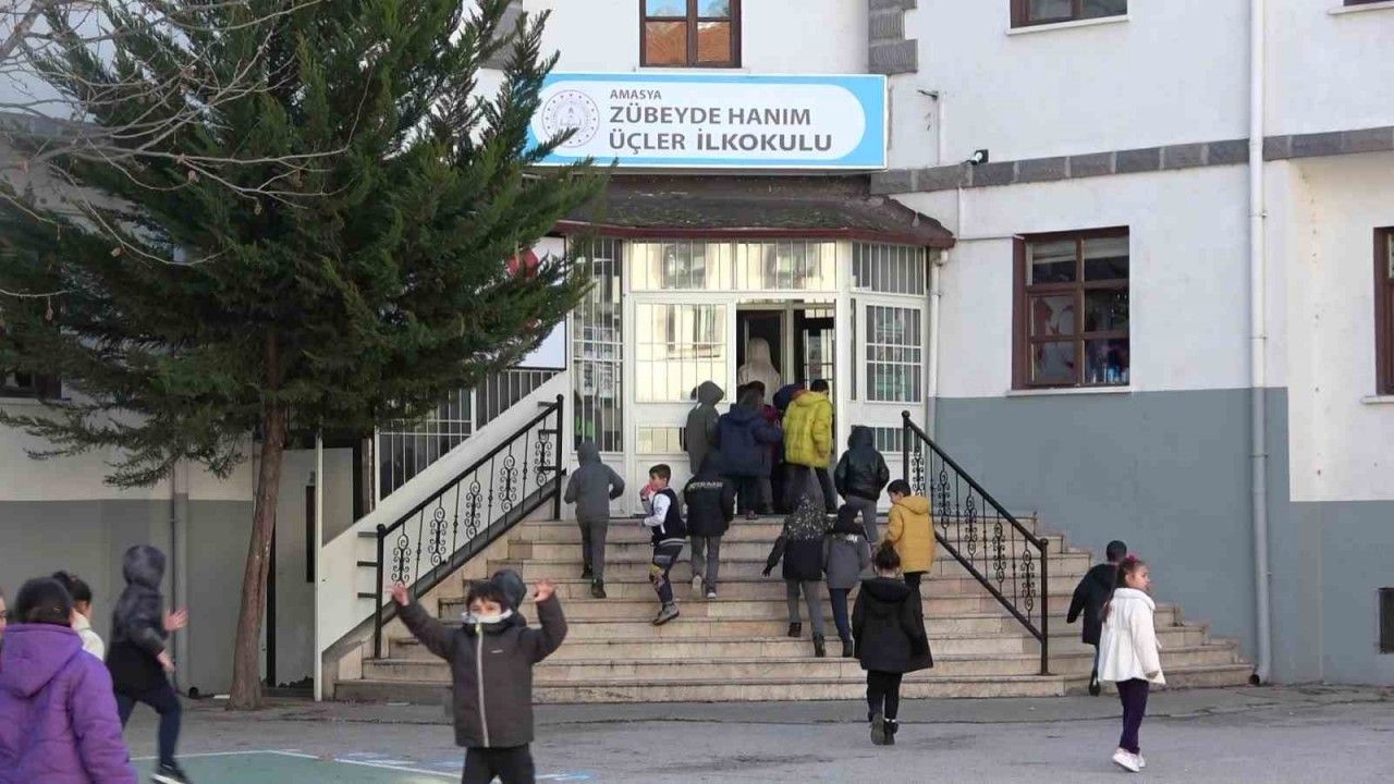 Amasya Valiliği, öğrencilerin o anlarını, "Önce ders. Teneffüste ise kar altında arkadaşlarla kalpleri ısıtan eğlence anları. Karda vakit geçirmenin en güzeli bu olsa gerek değil mi çocuklar?" notuyla paylaştı.