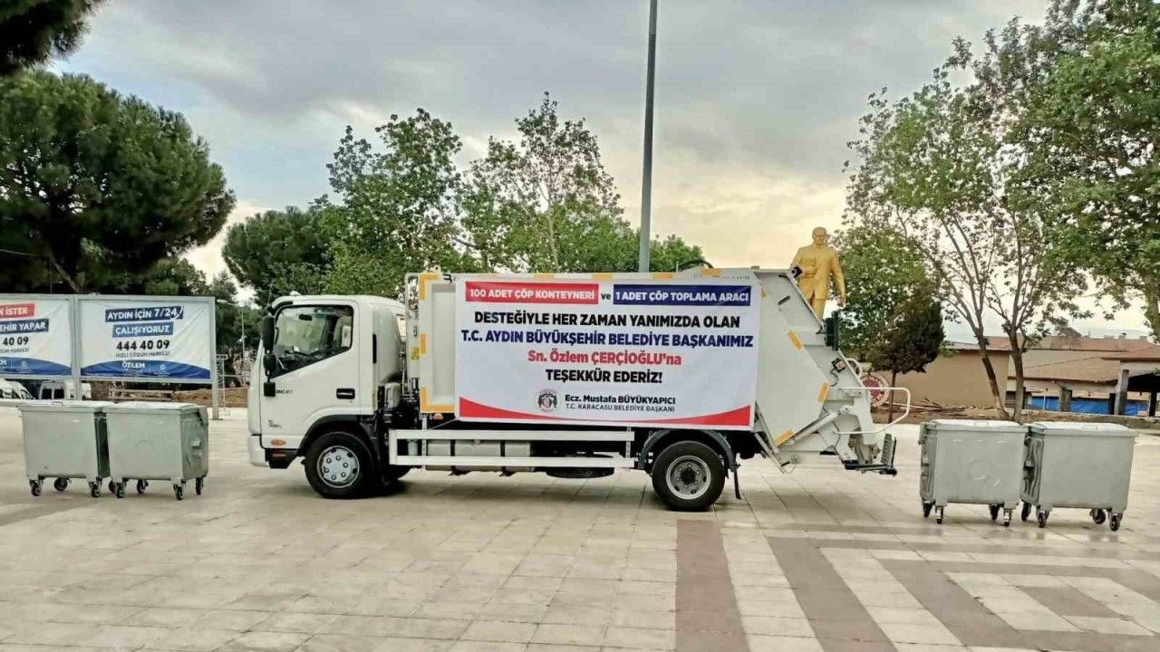 Aydın Büyükşehir Belediyesi’nden Karacasu Belediyesi’ne 100 adet çöp konteyneri ve 1 adet çöp toplama aracı desteğinde bulundu.