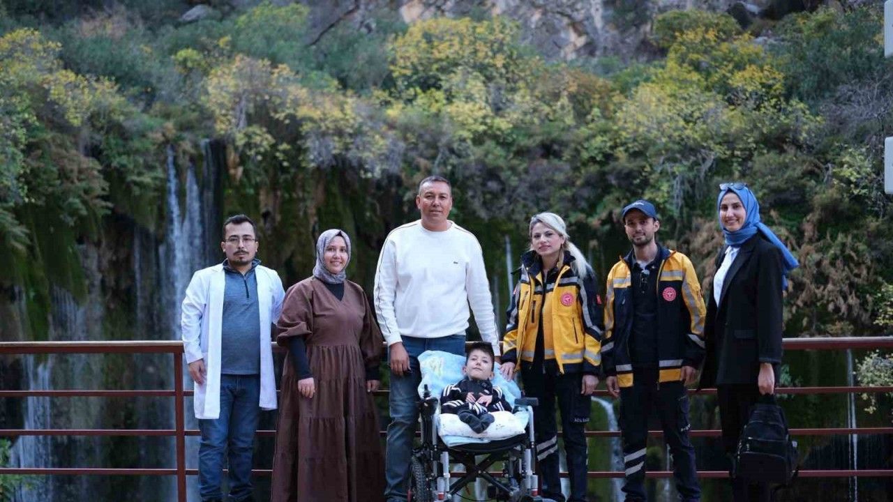 Kerim Doğan’ın Türkçe öğretmeni Recep Gürbüz’ün kızı Fatma Neval Gürbüz’ün İl Sağlık Müdürlüğü ekiplerine ulaşmasıyla harekete geçildi. Sağlık ekipleri, annesi Teslime Doğan ve babası Murat Doğan ile birlikte Kerim’in en büyük hayallerinden biri olan Mut Yerköprü Şelalesi ziyaretini gerçekleştirdi.