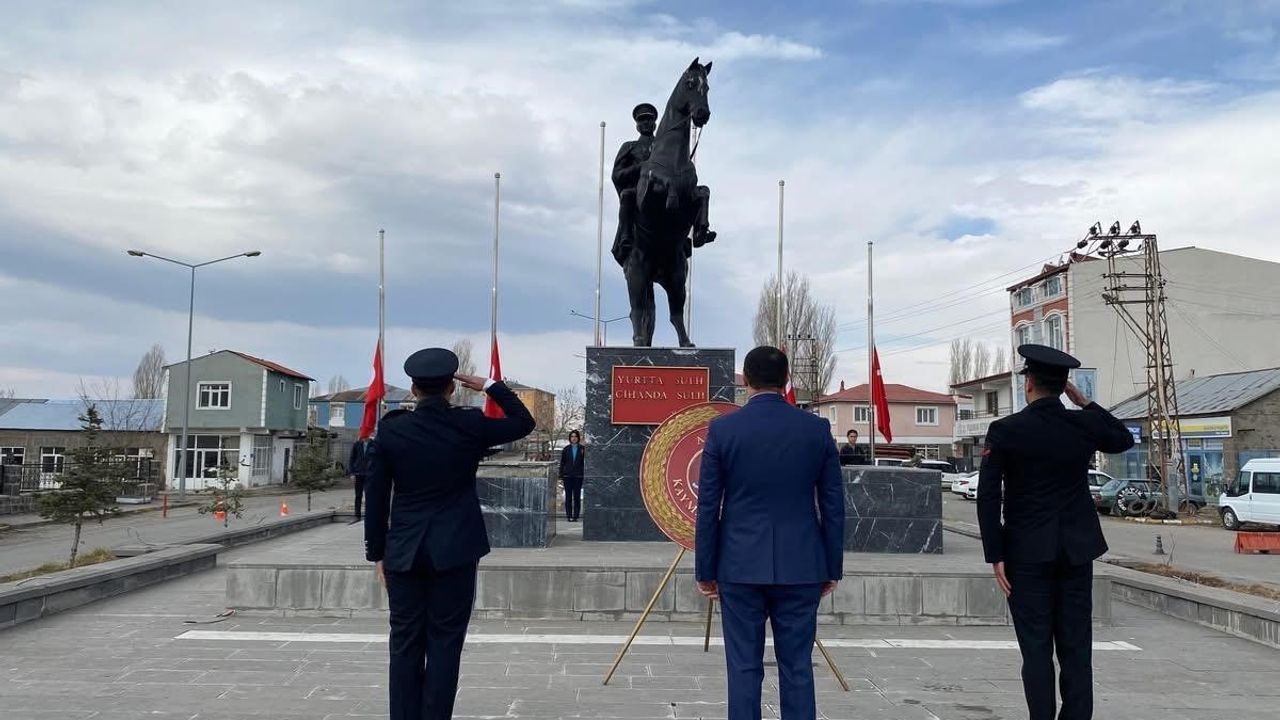 Kaymakam Muhammed Burak Akköz ve Belediye Başkanı Zeki Elma tarafından Cumhuriyet Meydanı’ndaki Atatürk Büstü’ne çelenk sunuldu. Tören, şehitler için saygı duruşu ve İstiklal Marşı’nın okunmasıyla devam etti.