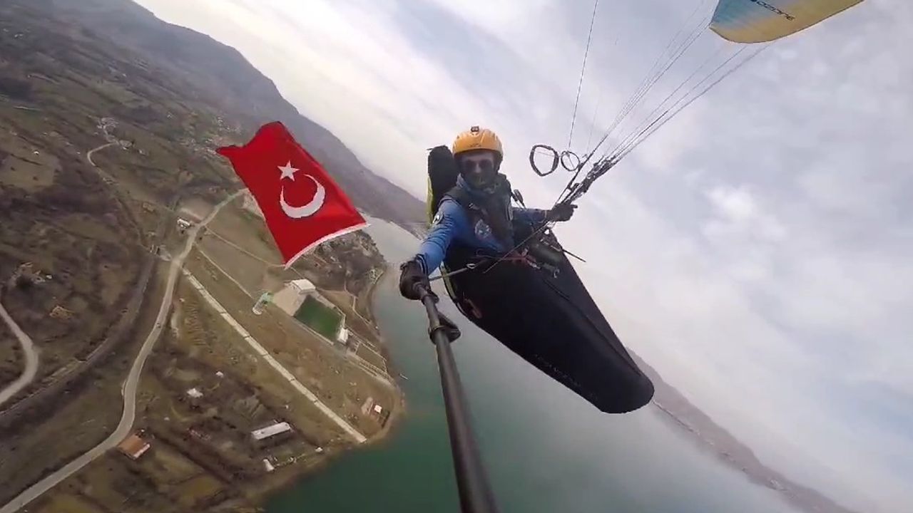 Elazığ’da 18 Mart Çanakkale Zaferi ve Şehitleri Anma Günü nedeni ile çeşitli programlar gerçekleştiriliyor. Bu çerçevede Elazığ Sportif Havacılık Kulübü pilotu Mücahit Safa Yıldız tarafından Sivrice ilçesindeki Hazarbaba yamaçlarında paraşütle Türk bayraklı uçuş gerçekleştirildi.