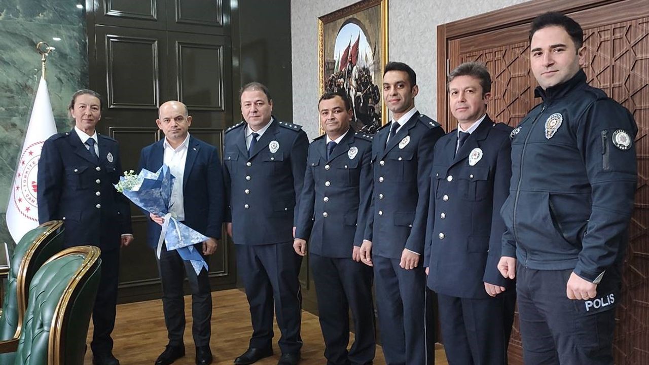 Emniyet Teşkilatının 180. kuruluş yılı dolayısıyla İlçe Emniyet Müdür V. Mehmet Selçuk Ceylan ve beraberindeki Personel Çan Kaymakamı Dr. Emre Nebioğlu’nu makamında ziyaret ederek çiçek takdim ettiler. Ziyaretten duyduğu memnuniyeti dile getiren ve Polis Teşkilatının kuruluşunun yıldönümünü kutlayan Çan Kaymakamı Dr. Emre Nebioğlu, tüm emniyet mensuplarına özverili çalışmalarından dolayı teşekkür ederek meslek hayatlarında kolaylık ve başarılar diledi. Ardından Atatürk Şehir Meydanında bulunan Atatürk Anıtı’na çelenk sunuldu, saygı duruşunda bulunulması ve İstiklal Marşı’nın okunmasıyla tören sona erdi.