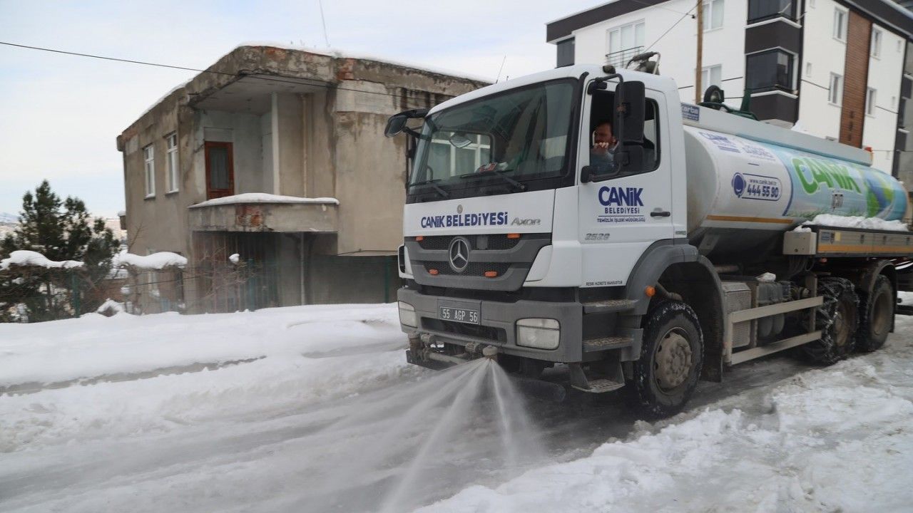 Samsun’un Canik Belediyesi, ilçede etkili olan kar yağışlarına 89 bin 680 kilogram solüsyon ve 121 bin 150 kilogram tuz ile müdahale etti.