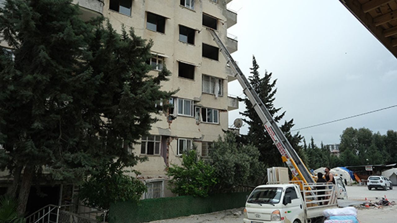 Depremin vurduğu ve en yıkıcı etkilerin olduğu Hatay’ın Antakya ilçesinde, bir yandan yıkılan binaların enkazları kaldırılırken diğer yandan da ağır hasarlı binaların yıkımı sürüyor. Yıkımı henüz gerçekleşmeyen ağır hasarlı binalardan ise tüm tehlikelere rağmen eşyaların tahliye süreci devam ediyor.