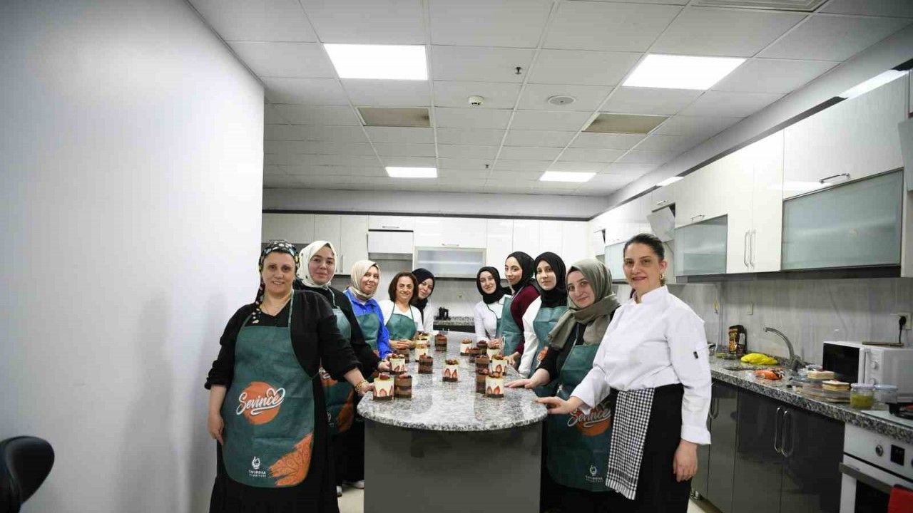 Çayırova Belediyesi’nin açtığı pastacılık kursuna katılan vatandaşlar, pasta yapımını en ince detayına kadar öğreniyor.