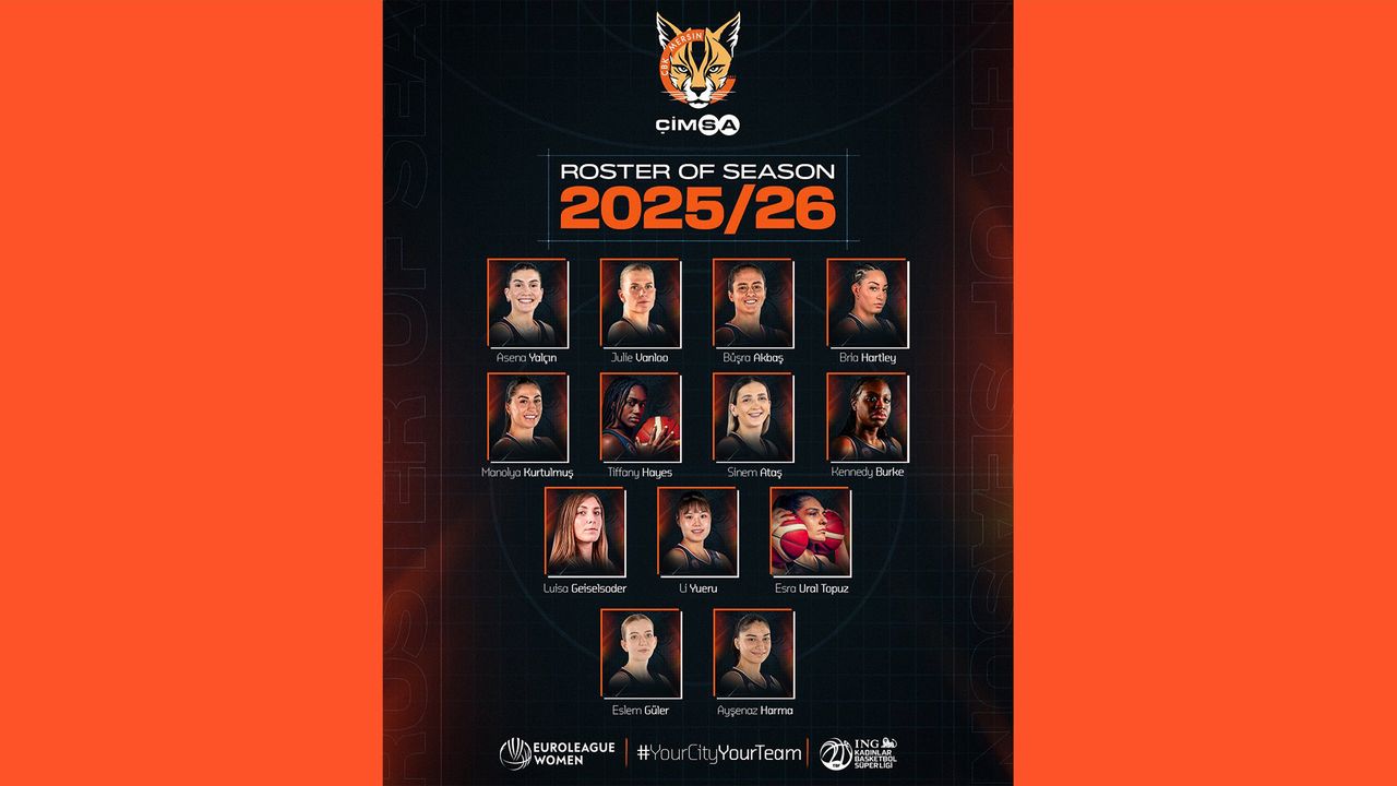 Mersin’i en üst liglerde temsil edecek olan ÇİMSA Çukurova Basketbol Kulübü (ÇBK) Mersin’in, 2025-2026 sezonu kadrosu açıklandı. Hem Kadınlar Avrupa Basketbol Ligi’nde hem de Kadınlar Basketbol Süper Ligi’nde mücadele edecek olan ÇBK, her sezon olduğu gibi bu sezona da üç kupa hedefiyle başlayacak.