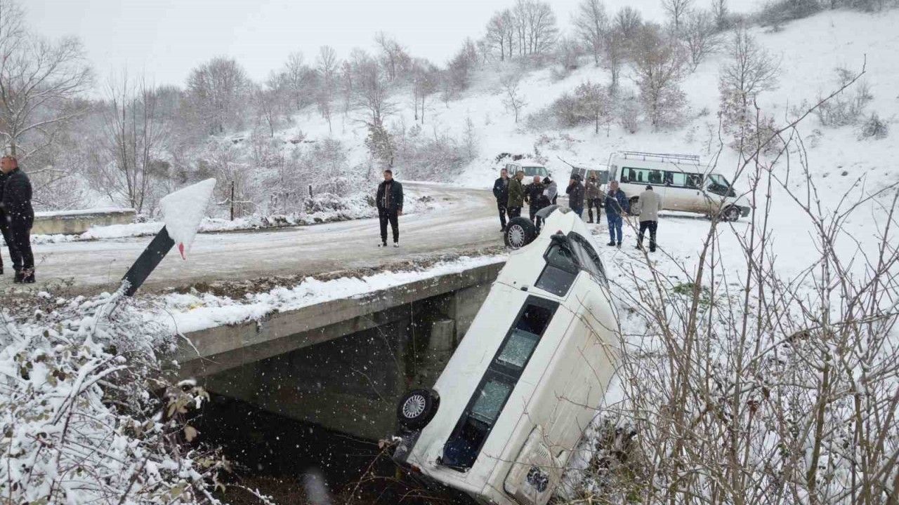 Kaza, Çamyatağı Mahallesi’nde sabah saatlerinde meydana geldi. Edinilen bilgiye göre, İstanbul’dan cenazeye gelen Sinan K. yönetimindeki 34 AV 7345 plakalı minibüs, Şeyhali mevkisinde Kavaklı Çayı üzerindeki korkuluğu bulunmayan köprüden aşağıya devrildi. Kar ve buzlanma nedeniyle meydana gelen kazanın ardından bölgeye jandarma, itfaiye ve sağlık ekipleri sevk edildi.