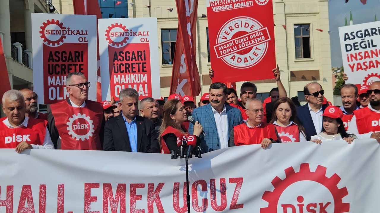 Türkiye’de büyük bir ekonomik yıkımın olduğunu savunan Çerkezoğlu, “Öyle bir düzen kurdular ki, düzeninin bütün çarkları, işçiden alıp patrona vermeye odaklı. Düzenin bütün çarkları, yoksulu daha yoksul, zengini daha zengin yapmak için dönüyor. Bu yolun başından itibaren bütün işçiler olarak, yani bu ülkenin bütün değerlerini ve güzelliklerini üretenler olarak sadece yılın 9 ayında vergi ve kesinti nedeniyle yaşadığımız kayıp, 1 trilyon 328 milyar TL’yi buldu. Yani sadece ilk 9 ayda bizler emekçiler, bu kadar parayı kaybettik. Bizden çaldıkları ise patronlara, bir avuç sermayedarın kasasına aktarılıyor. Dünyanın hiçbir yerinde asgari ücret bu kadar çok konuşulmazken, neden Türkiye’de bu kadar çok konuşuluyor? Çünkü Türkiye’yi bir asgari ücretliler ülkesi haline getirdiler. Türkiye’de bütün işçiler, asgari ücretle yoksulluğa mahkum edilmeye çalışılıyor. Türkiye'nin bir asgari ücretliler toplumu olmaktan çıkartılması için örgütleniyoruz. Bütün sınıf kardeşlerimizi sendikalı olmaya, DİSK'li olmaya çağırıyoruz” açıklamasında bulundu.