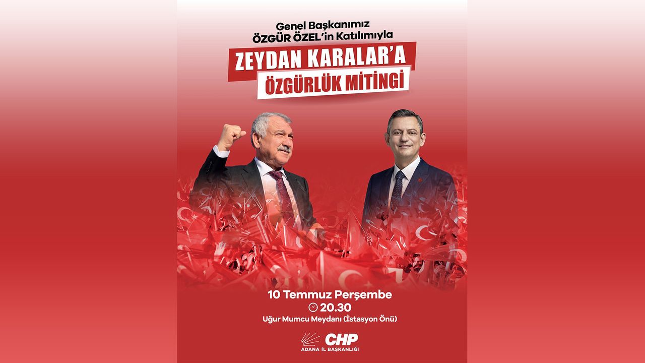 CHP’li Mersin belediye başkanları ve milletvekillerinin de katılması beklenen, “Zeydan Karalar’a Özgürlük” mitingi, yarın saat 20:30’da Uğur Mumcu Meydanı’nda gerçekleştirilecek.