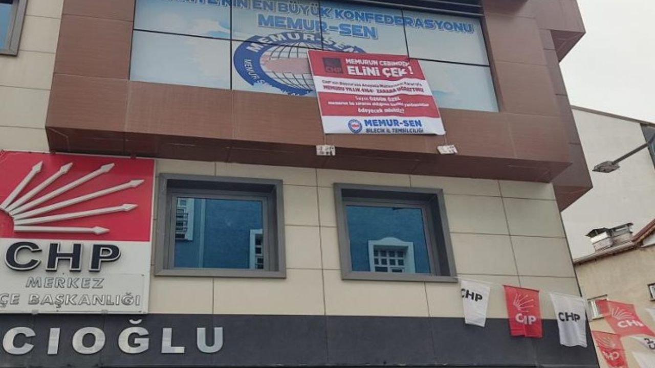 CHP Genel Başkanı Özgür Özel, dün Bilecik ziyaretleri kapsamında ilk olarak Osmanlı Devletinin kurucu Osman Gazi’nin kayınpederi devletin manevi kurucu Şeyh Edebali Türbesi ziyaret etti. Ardından CHP Bilecik İl Başkanlığını binasına geçen Özel, burada Memur-Sen’den pankartlı protestosu ile karşılaştı. CHP İl Başkanlığı ile Memur-Sen Bilecik İl Temsilciliği aynı binada bulunurken, binaya asılan pankartta, "Memurun cebinden elini çek. CHP’nin başvurusu anayasa mahkemesi kararıyla. Memuru yıllık 4 bin 164 TL zarara uğrattınız. Özgür Özel, memurun bu zararını, aldığınız hazine yardımından ödeyecek misiniz?" yazıları yer aldı.